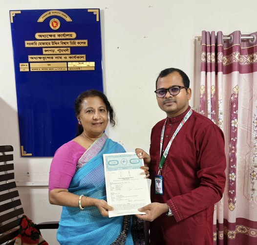 সার্ভিস ইনোভেশনে গুরুত্বপূর্ণ অবদানের জন্য জেলা প্রশাসনের পক্ষথেকে সম্মাননা গ্রহন